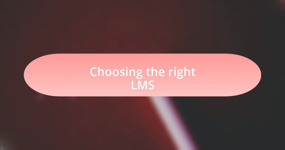 Choosing the right LMS requires careful consideration of your specific organizational needs. In my experience, understanding the unique demands of your workforce can make all the difference in the selection process. For instance, I once worked with a company that prioritized blended learning, leading us to choose an LMS that successfully integrated both online modules and in-person training. Have you taken the time to analyze what your team truly needs for their development?