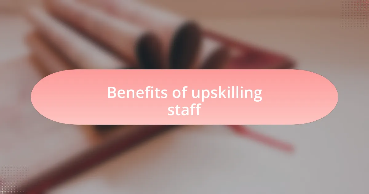 Upskilling staff leads to increased job satisfaction, as employees who develop new skills often find renewed enthusiasm for their work. I remember a particular team member who had been feeling stagnant in her role; once she took part in a leadership course, her confidence soared. Can you imagine the difference in her energy? It’s remarkable how learning can reignite passion and create a more vibrant workplace.