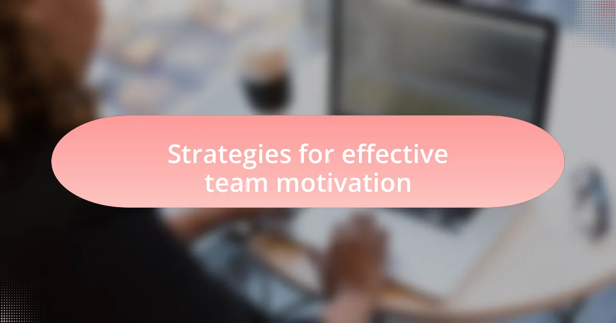 One effective strategy for team motivation is recognizing and celebrating small wins. In my own experience, taking the time to acknowledge accomplishments—no matter how minor—creates a ripple effect of positivity. I remember a project where we implemented weekly shout-outs for team members who made significant progress. This simple gesture transformed our atmosphere, making everyone feel valued and motivated to contribute more. Isn’t it remarkable how a few words of recognition can elevate morale?